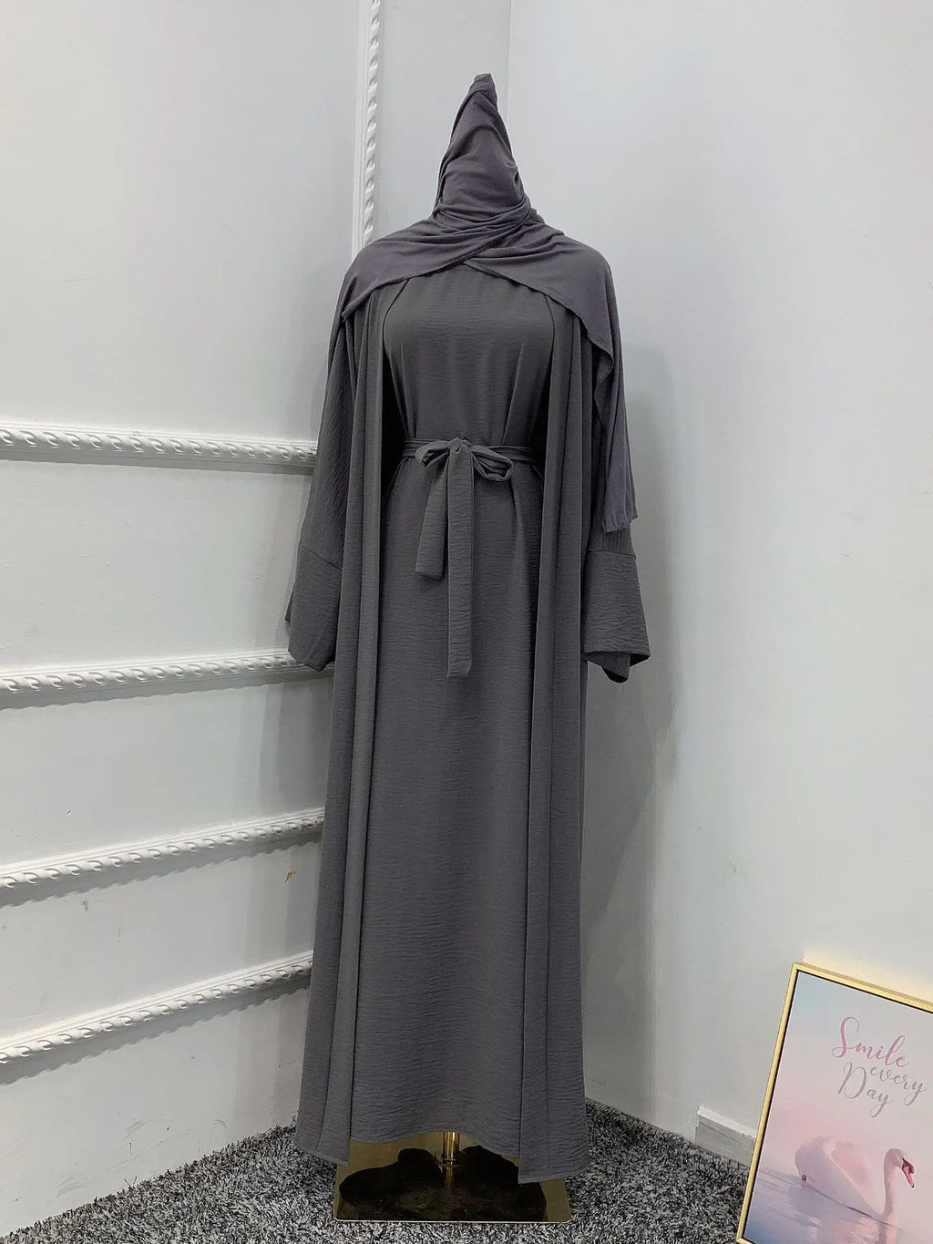 Ramadan Eid Djellaba Suits Abaya Dubai Two pieces Thick Muslim Sets Dress Abaya Dubai Turkey Muslim Islam Abayas With Belt WY604